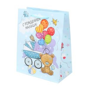 Пакет подарочный МАТОВЫЙ с рождением малыша,м,140 гр/м2 ЧУДО ПРАЗДНИК