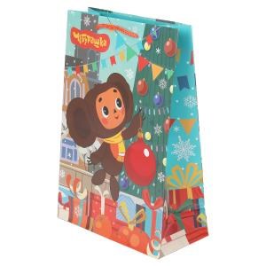 Пакет подарочный МАТОВЫЙ СОЮЗМУЛЬТФИЛЬМ ml,Чебурашка новогодн,140 гр/м2 ЧУДО ПРАЗДНИК