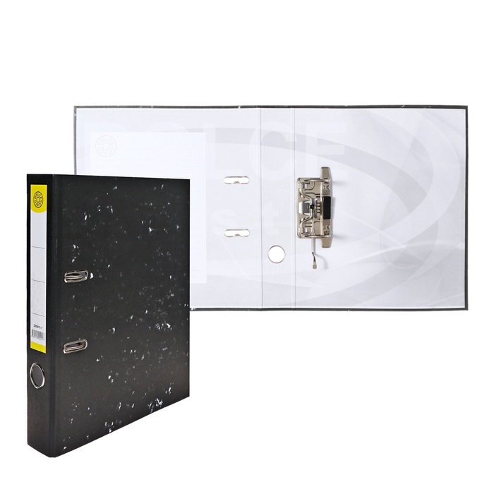 Папка-регистратор уровня "эконом" с арочным механизмом изготовлена из плотного картона. С внешней стороны оклеена износостойкой бумагой под «мрамор».