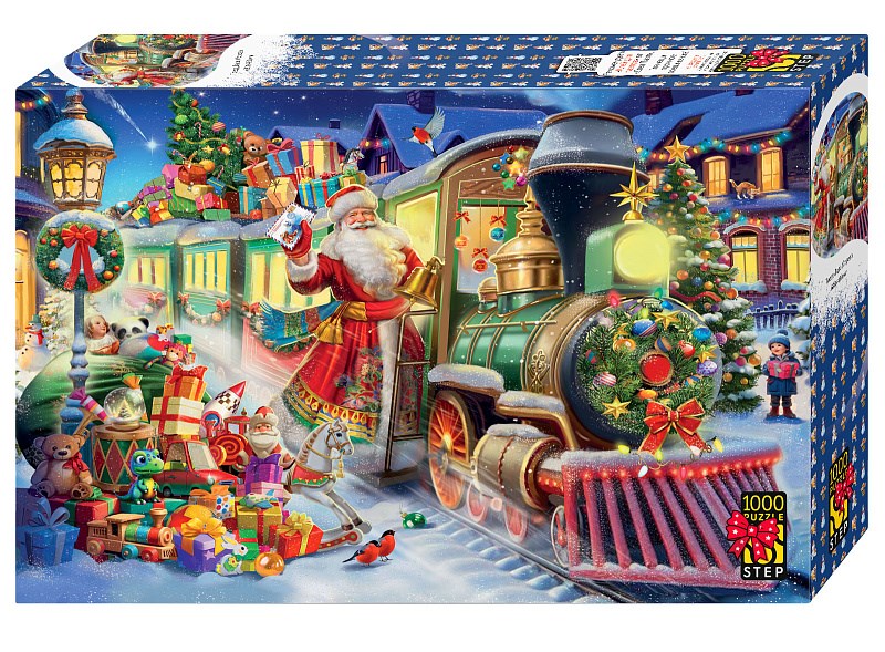 Этот пазл из 1000 деталей "Поезд Деда Мороза" собирается в красочную картину размером 480×680 мм., которая мгновенно переносит в атмосферу зимнего праздника.