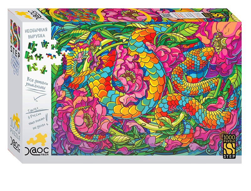 Пазл "Змея" состоит из 1000 элементов. Он отлично подойдет в качестве презента на любой праздник, особенно в преддверии 2025 года.