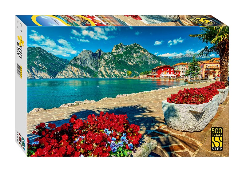 Пазл "Озеро Гарда, Италия" переносит вас на живописное побережье озера Гарда. На картине 500×345 мм. — прозрачная вода, яркие дома и горные вершины. Каждая из 500 деталей добавляет штрих к этой атмосфере итальянского отдыха.