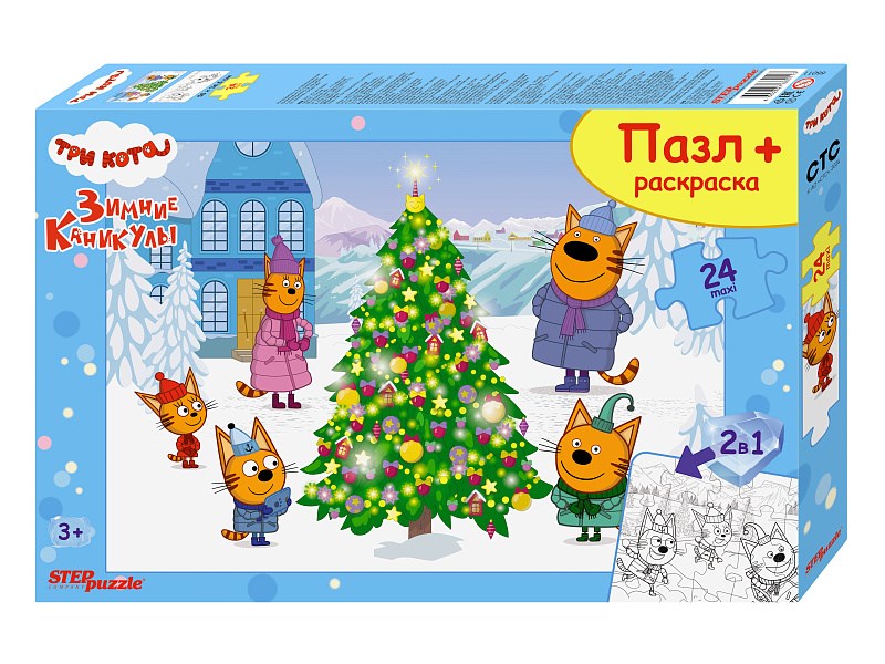 Пазл maxi 24 + раскраска "Три кота. Зимние каникулы" (АО "СТС")