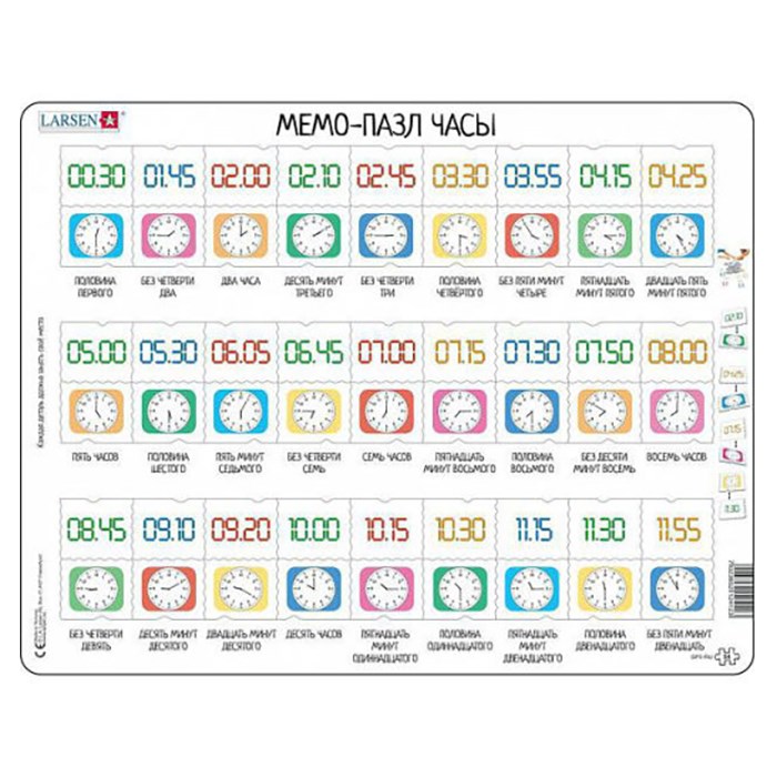 • Оригинальная игра поможет с пользой провести время и познакомиться с понятием ии обозначением времени на электронном и аналоговом табло.