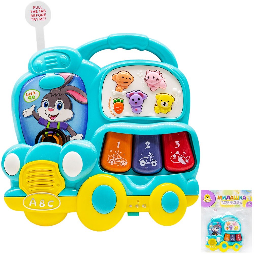 Музыкальная игрушка в виде яркого синего автобуса «Милашка - развивашка» – это не только фортепиано, это настоящий веселый оркестр!