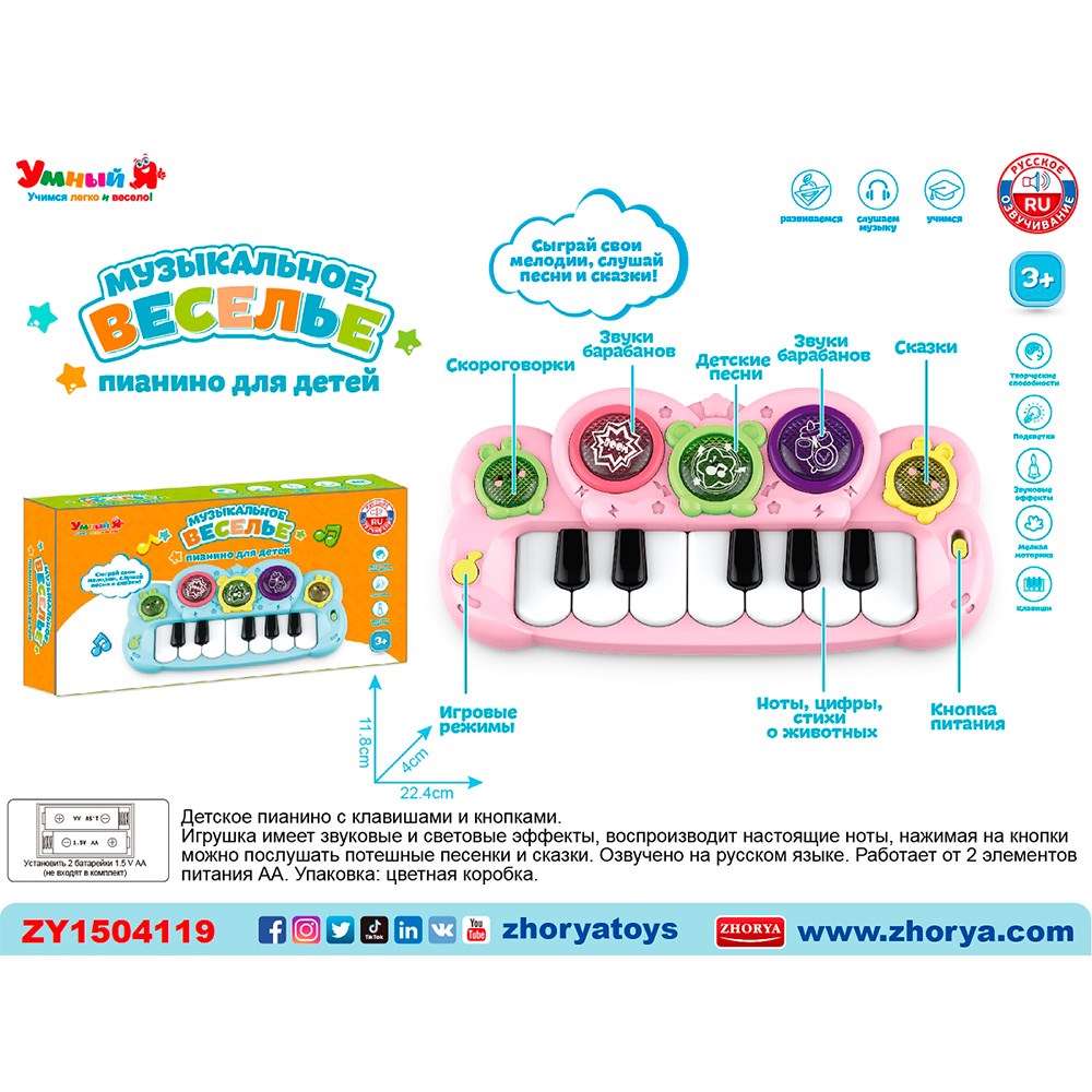 Пианино ZYE-E0597-2 Умный Я с русским чипом в кор.