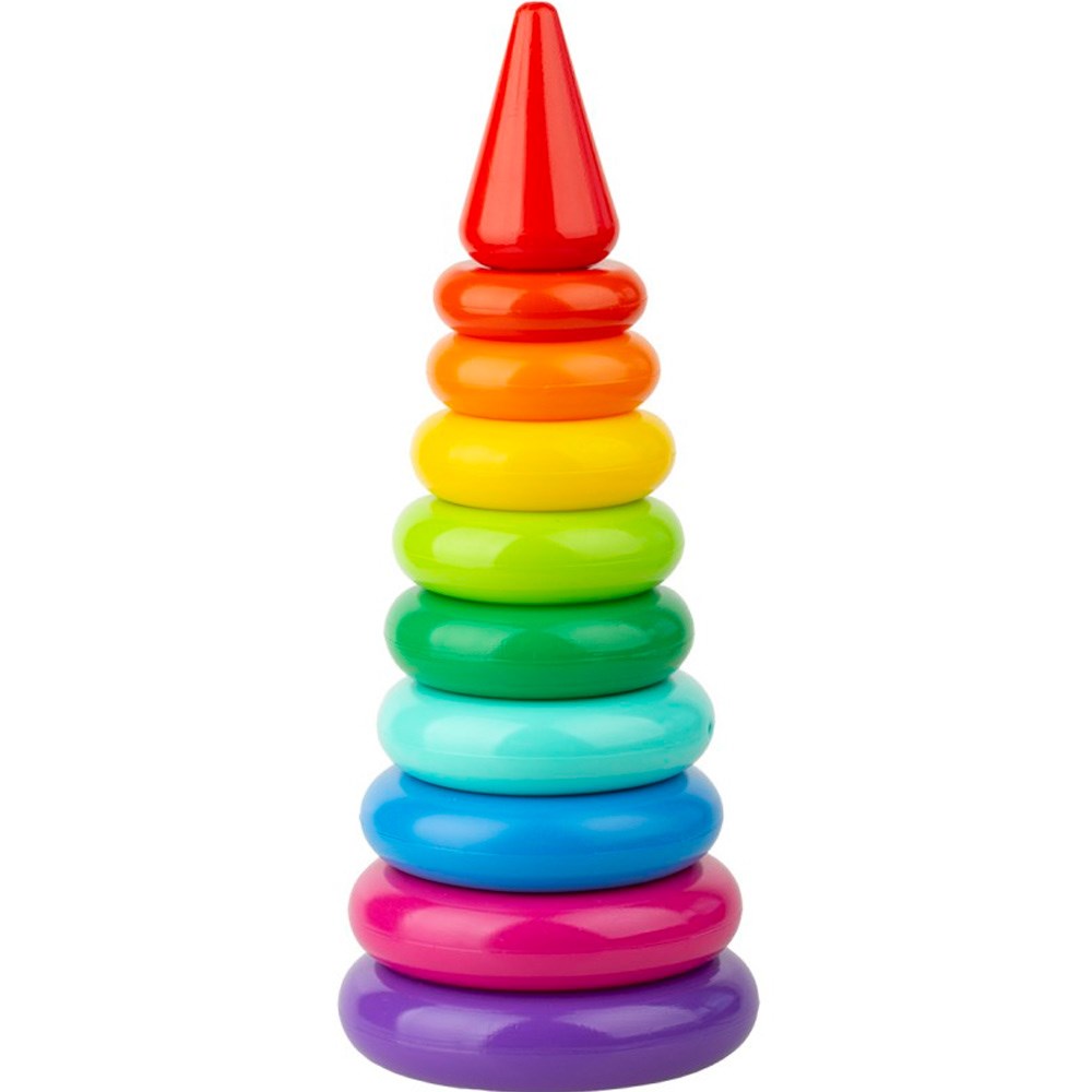 Пирамидка представляет собой набор постепенно уменьшающихся по величине разноцветных колец, надеваемых на стержень.