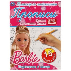 Пишем курсивные буквы. Тренажёр по чистописанию. Барби. 145х195мм. 16 стр. 2+2 Умка в кор.50шт
