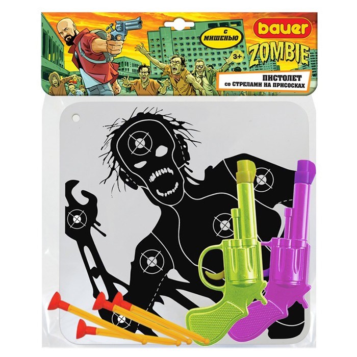 Пистолет Bauer 733 Охотник на зомби. Пистолет 2шт с мишенью со стрелами на присосках