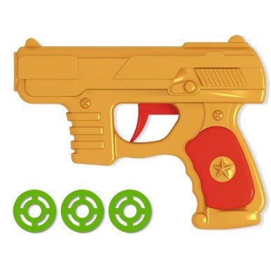 Оригинальный яркий пистолет создан для тренировки меткости, реакции, внимания и сосредоточенности. Пистолет выполнен в красочном дизайне. Пистолет стреляет плоскими дисками на небольшое расстояние. Игрушку удобно держать в руках и осуществлять высокоточную стрельбу благодаря прицелу. С данной игрушкой мальчики смогут примерить на себя роль полицейских и весело провести свободное время. Игра с таким пистолетом поможет ребенку в развитии ловкости, координации движений и сноровке.