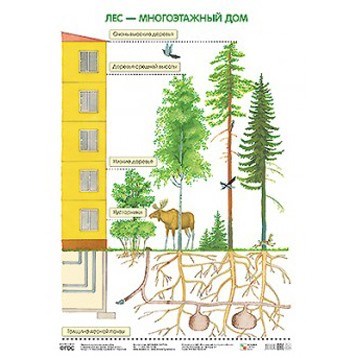 Плакат "Лес-многоэтажный дом" представлят собой наглядно-демонстрационный материал для проведения тематических занятий в детском саду. Этот плакат познакомит ребенка с лесными жителями. Красочные иллюстрации помогут легко и быстро, в процессе игры, изучить и запомнить названия животных и их жилищ.