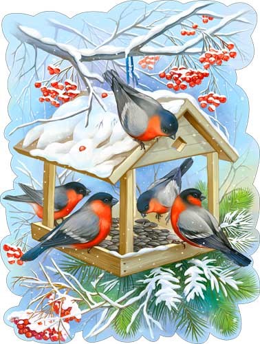 Плакат фигурный "Снегири" кормушка 595х450мм P2-522