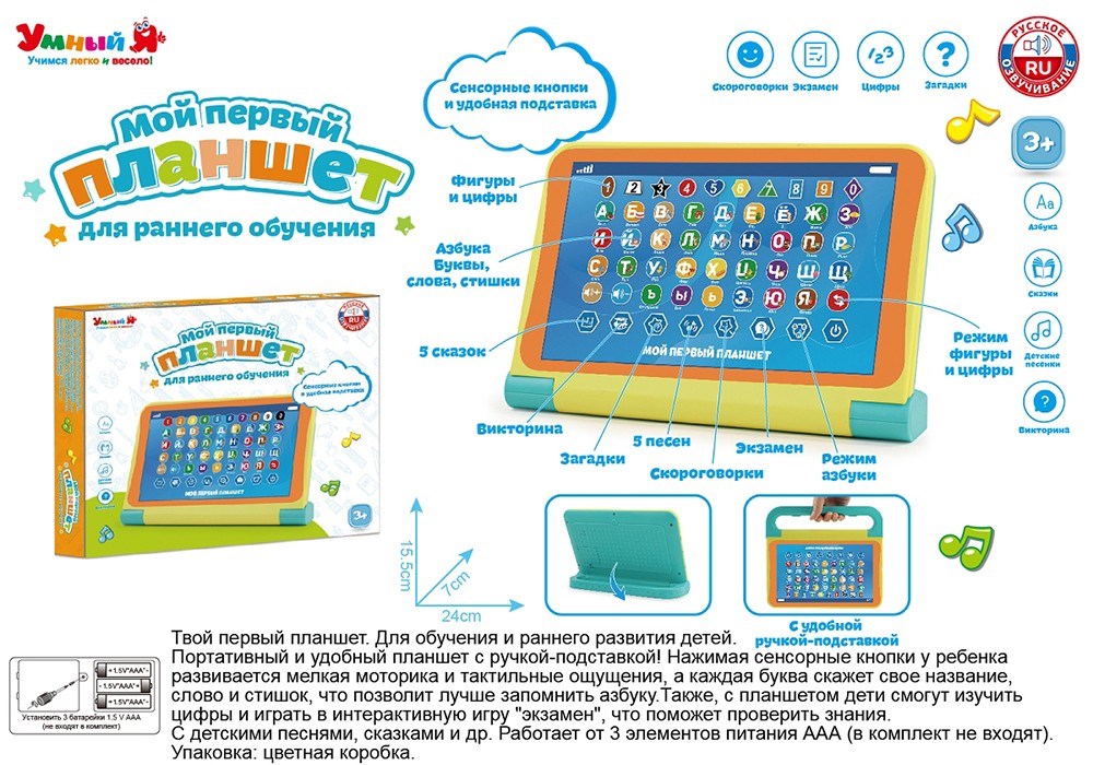 Планшет содержит сказки, песенки и звуки.