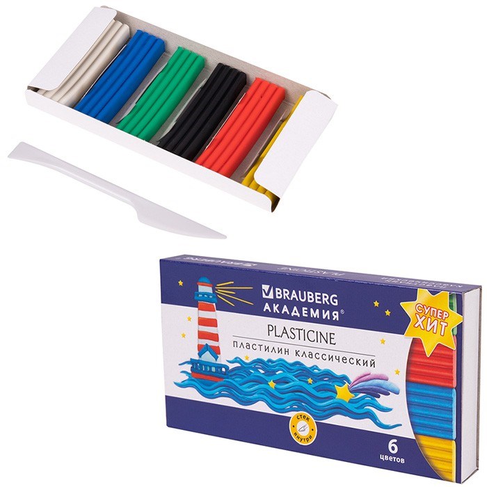 Пластилин 6цв Академия хит 120гр. со стеком 106440 BRAUBERG