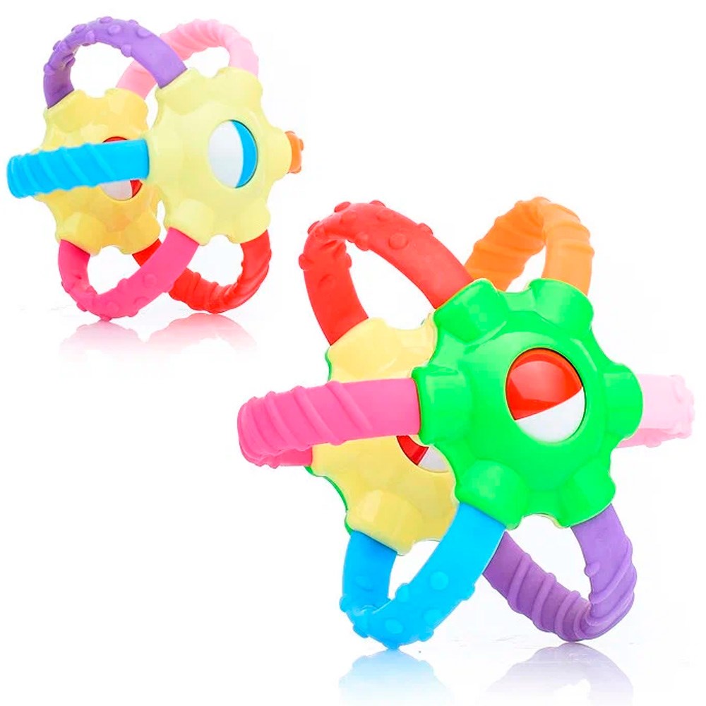 Погремушка-прорезыватель «Радуга» абсолютно безопасна для детей и выполнена из высококачественных и прочных материалов. Её можно смело сжимать, растягивать или кусать.