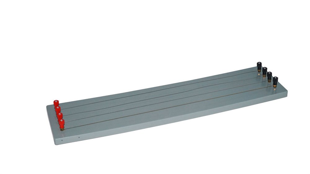 Прибор представляет собой пластмассовую панель с универсальными зажимами, между которыми закреплены проволоки одинаковой длины из различных материалов.