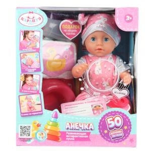 Пупс озвуч 25см, пьет, писает, закр. глазки, 4акс, 50 звуков КАРАПУЗ