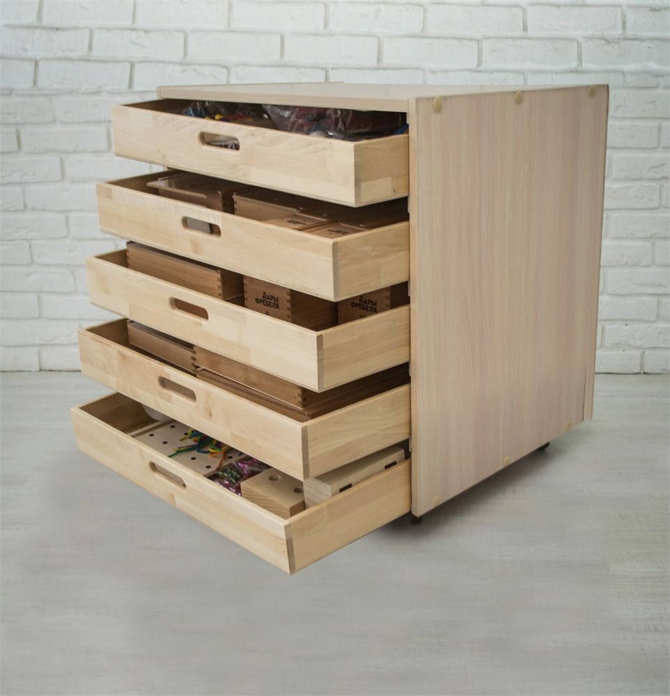 - Все тематические наборы разложены по отдельным ящикам, которые удобно хранить в мобильной тумбе на колесах.