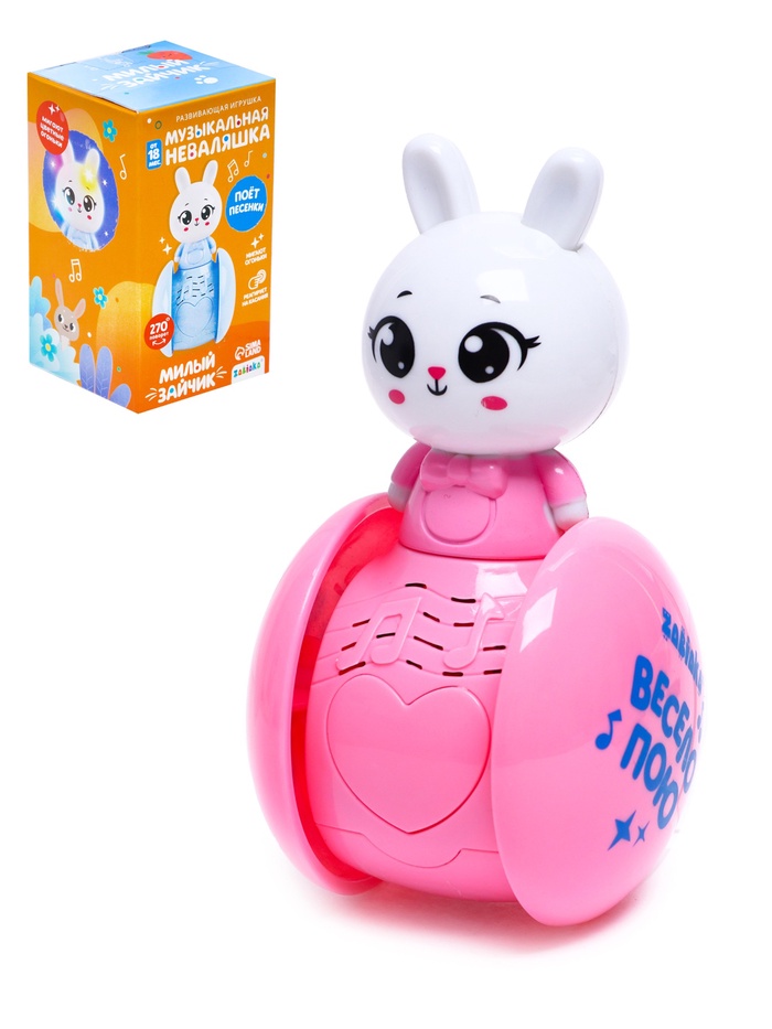 )Весёлый друг для первых открытий! Музыкальная неваляшка «Милый зайчик» подарит малышу радость игры и мягко стимулирует развитие. Игрушка реагирует на прикосновения — стоит качнуть зайчика, и он зазвучит, засветится, увлекая ребёнка в мир звуков и движения.