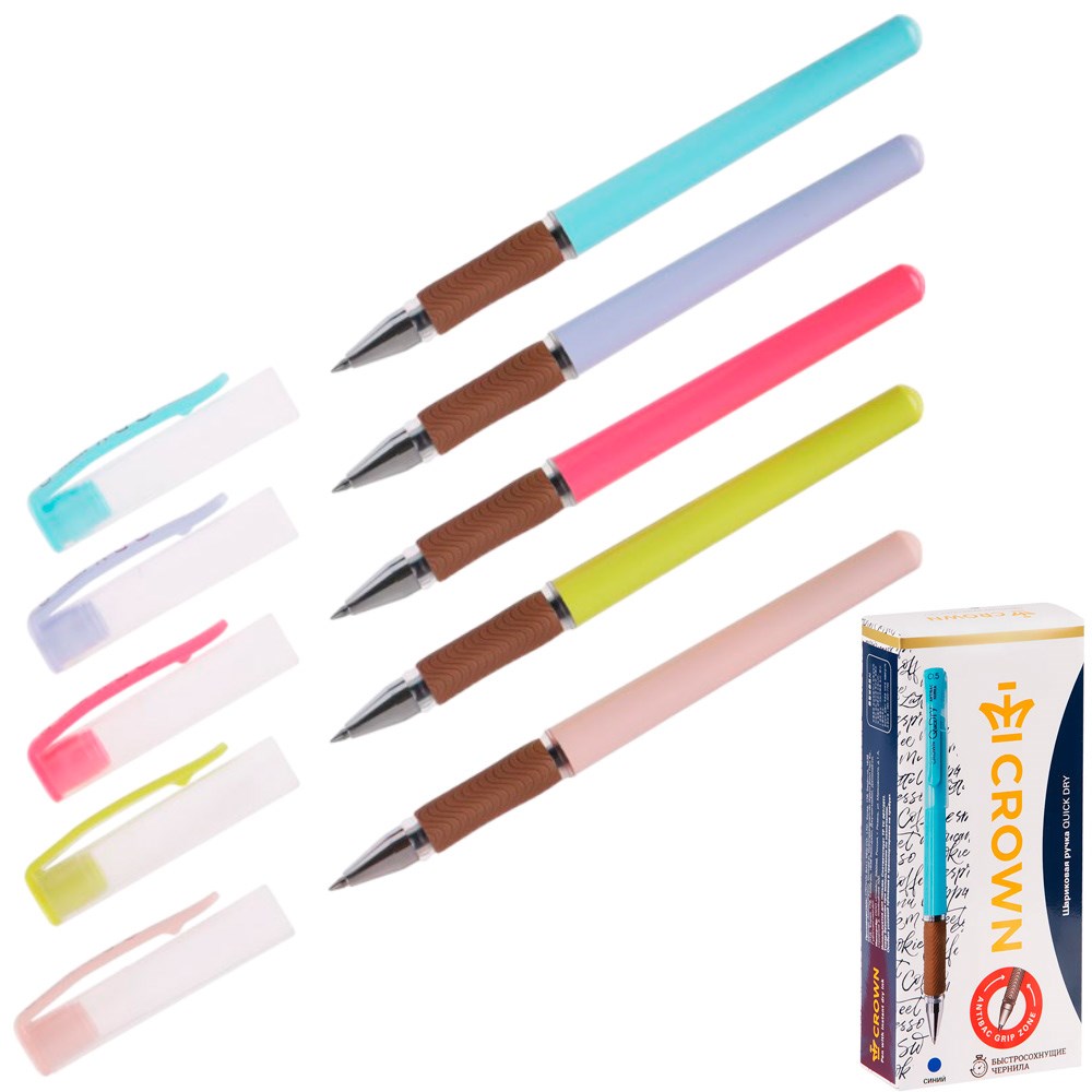 Ручка гелевая синяя Crown "Quick Dry" с быстросохнущими чернилами и антибактериальным грипом 0,5мм AT-2020