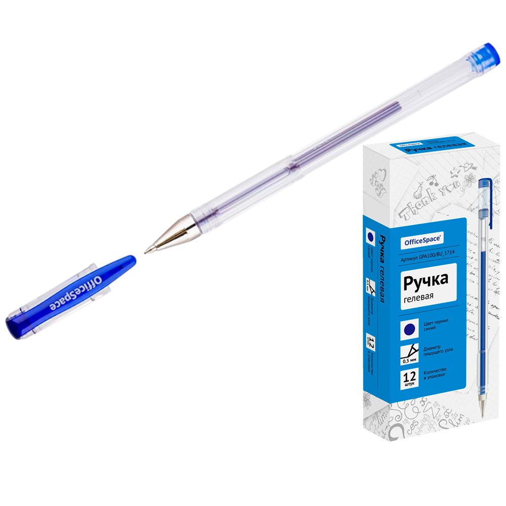 Ручка гелевая синяя OfficeSpace 0,5мм GPA100/BU_1714