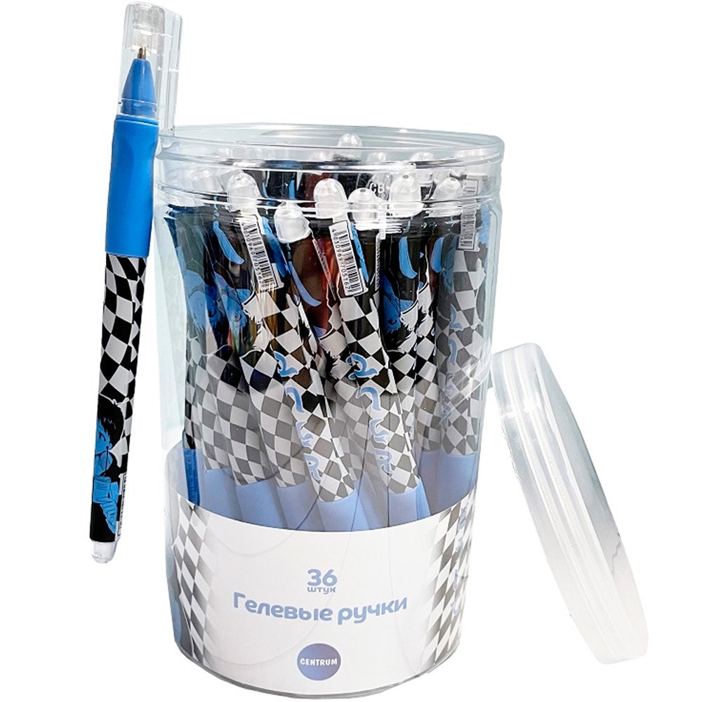 Ручка гелевая синяя прорезиненная Аниме "Клетка голубая" 0,5 мм 70516