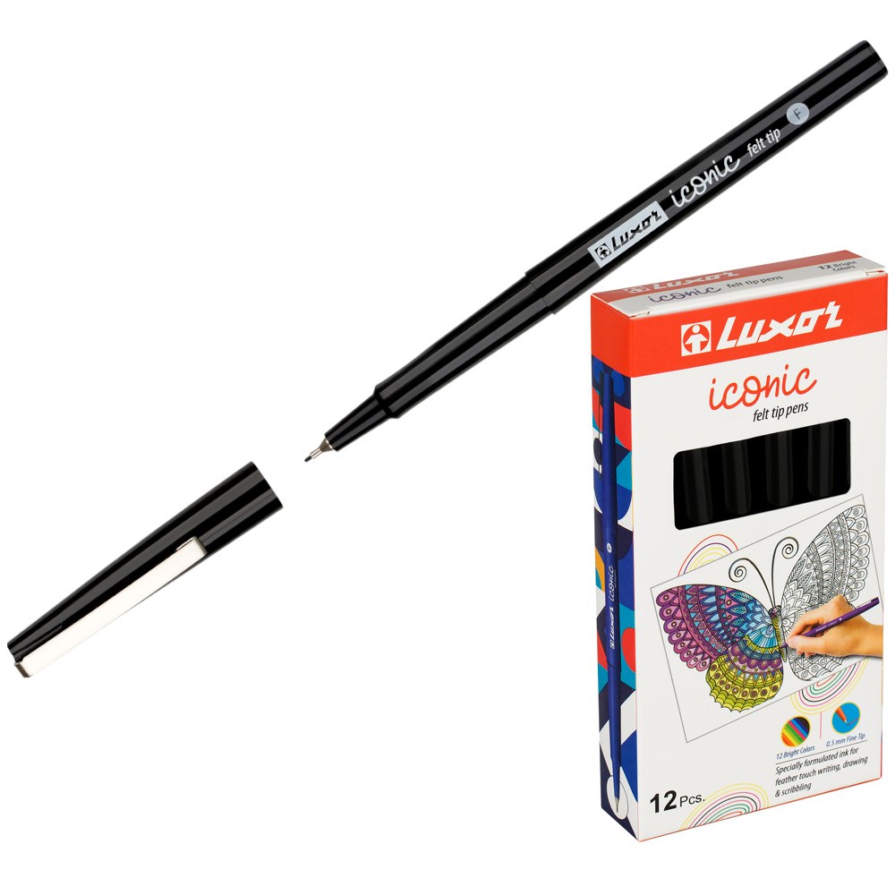 Ручка капиллярная черная Luxor "Iconic F" синяя, 0,5мм 15801 F