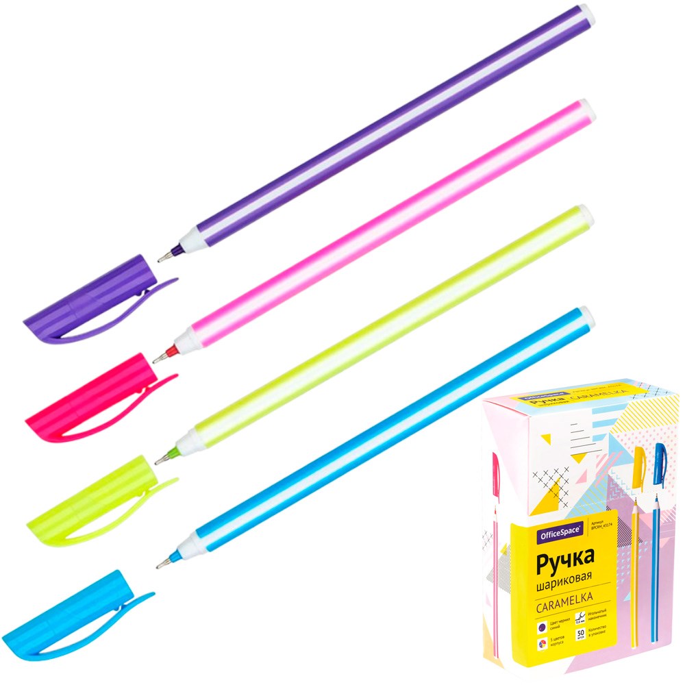 Ручка шариковая синяя на масляной основе OfficeSpace Caramelka 0,6мм 312036