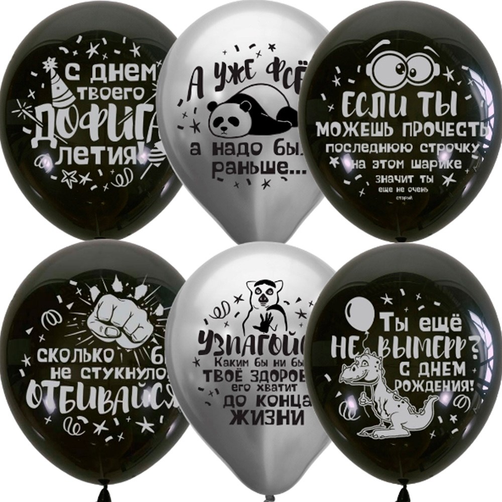 Шар 12" 30 см Black&Silver СДР Оскорбительные шарики 25шт 6082451 /цена за упак/