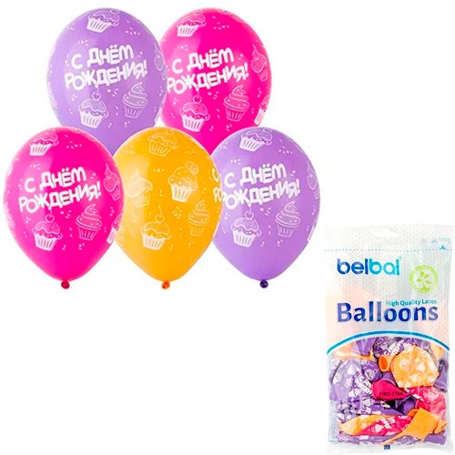 Шар 14" Шелкография пастель С ДР Кексы 25 шт 1103-1764 /цена за упак/