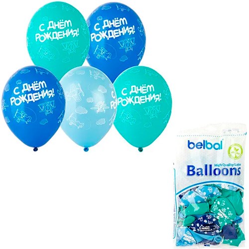 Шар 14" Шелкография пастель С ДР Самолеты 25 шт 1103-1763 /цена за упак/