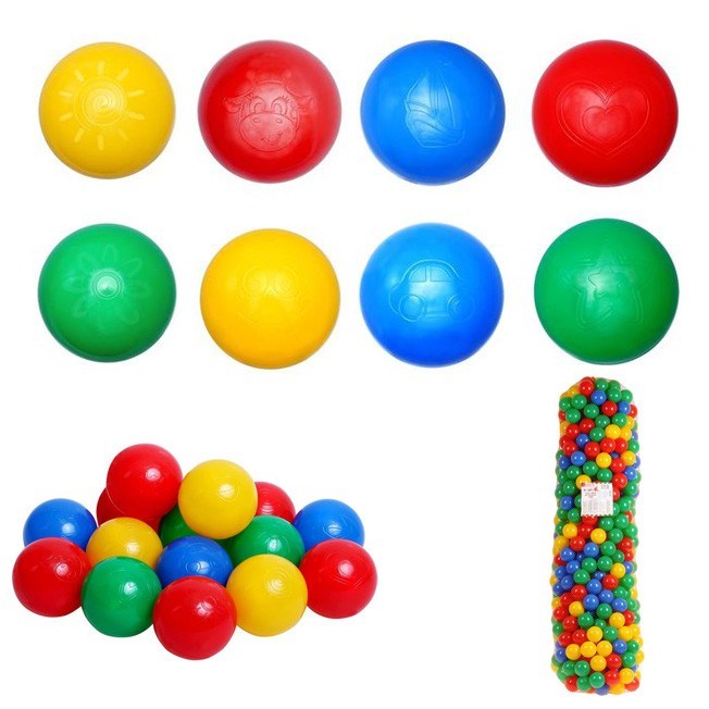 Яркие разноцветные шарики для сухого бассейна добавят в детские игры больше позитива, веселья и азарта! На каждом элементе прорисована картинка: машинка, жирафик, солнышко, цветочек, сердечко, кораблик, улыбка или звёздочка. Шарики выполнены в сочных глянцевых красках, они отлично развивают у малышей восприятие цвета.