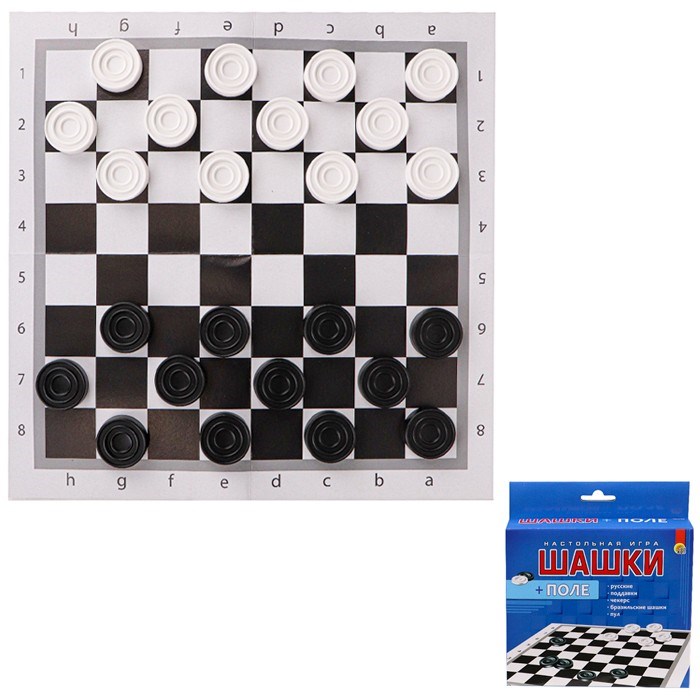 состав набора: игровое поле - 28,5*28,5 см, 24 пластиковые шашки (12 черных и 12 белых)
