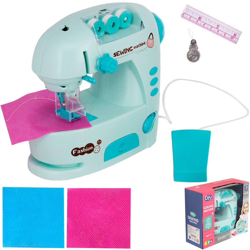 Комплектация: швейная машина - 1 шт., катушка с нитками - 3 шт., лоскут ткани - 3 шт., сантиметр - 1 шт., нитевдеватель - 1 шт., инструкция - 1 шт.