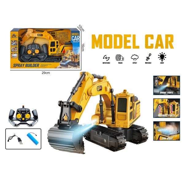 Комплектация: экскаватор - 1 шт, пульт - 1 шт, аккумулятор - 1 шт, кабель для зарядки - 1 шт, бутялочка для воды - 1 шт