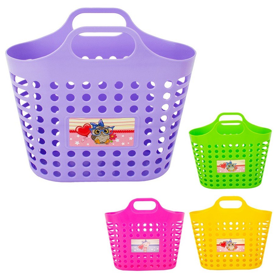 Яркая и прочная сумка-корзинка подойдет для игр в магазин, для хранения игрушек. Можно в ней хранить игрушки для ванной или песочницы - благодаря отверстиям, сумка будет проветриваться, а песок и вода спокойно вытекут, оставив игрушки сухими и чистыми. Сумка-корзинка оборудована двумя небольшими литыми ручками.