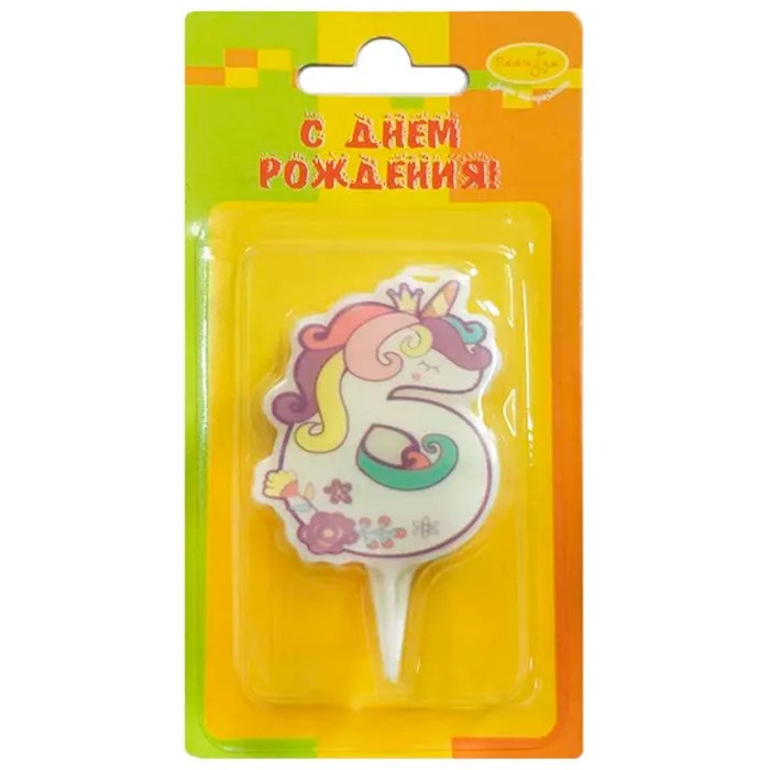 Свеча Цифра 6 Единорог 5см 6067731
