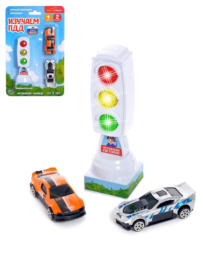 УЦЕНКА Светофор с машинками «Изучаем ПДД», световые эффекты, русский чип, МИКС