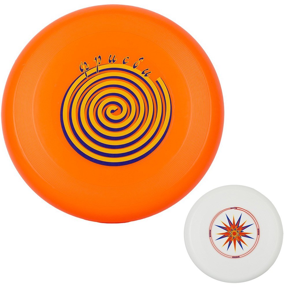 Фрисби изготовлена из высококачественной пластмассы. Это игровой снаряд, который запускают и ловят, представляет собой диск из пластика диаметром 26 см с загнутыми краями, внешне напоминающий тарелку. Он обладает замечательной аэродинамикой и отлично летает, а в воздухе его удерживает подъемная сила. Диск можно запускать под разными углами — он полетит одинаково хорошо. Игра способствуют развитию физической формы, развивает скорость реакции, ловкость, координацию.