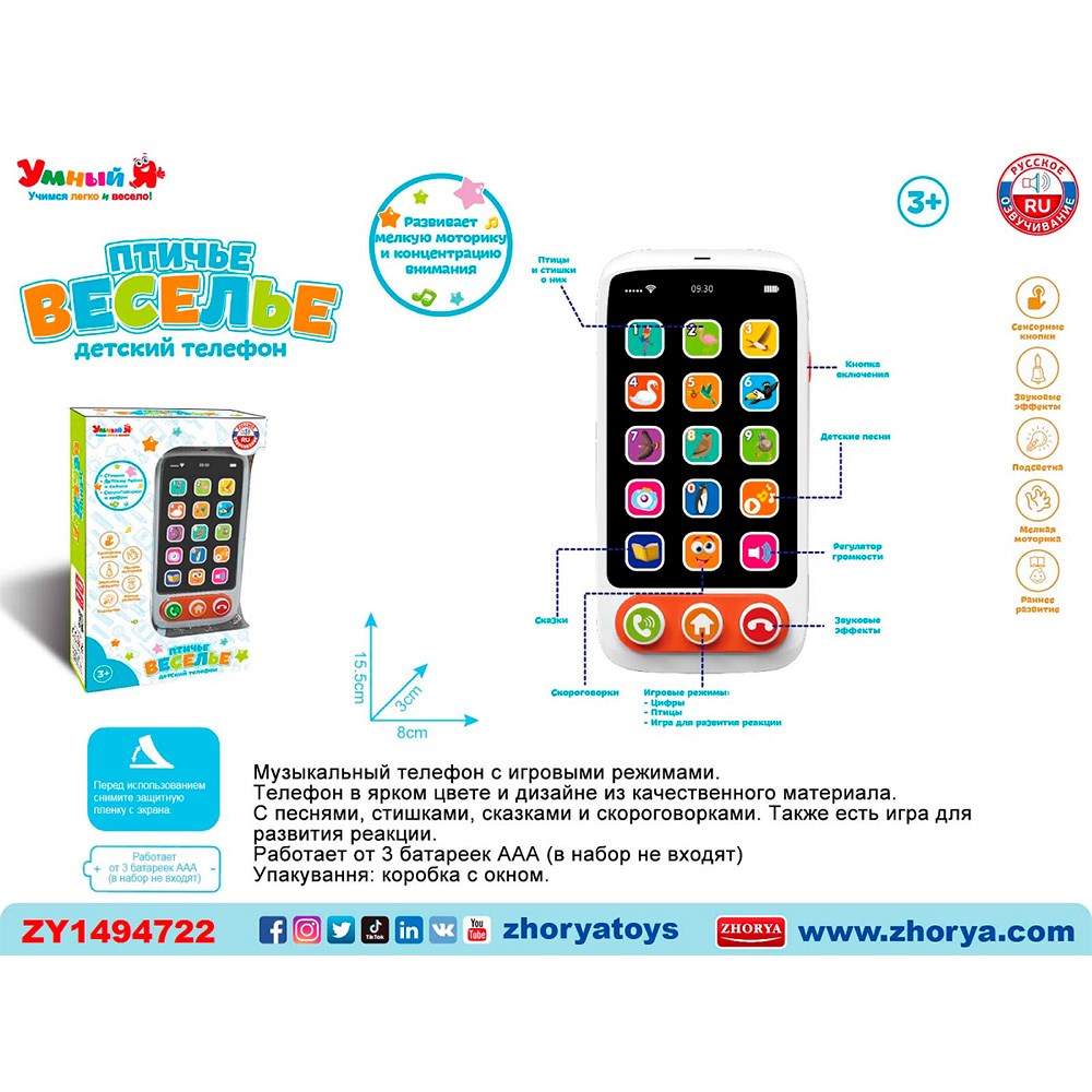 Телефон ZYE-E0590 Умный Я Птичье веселье, русск. озвуч., в кор.