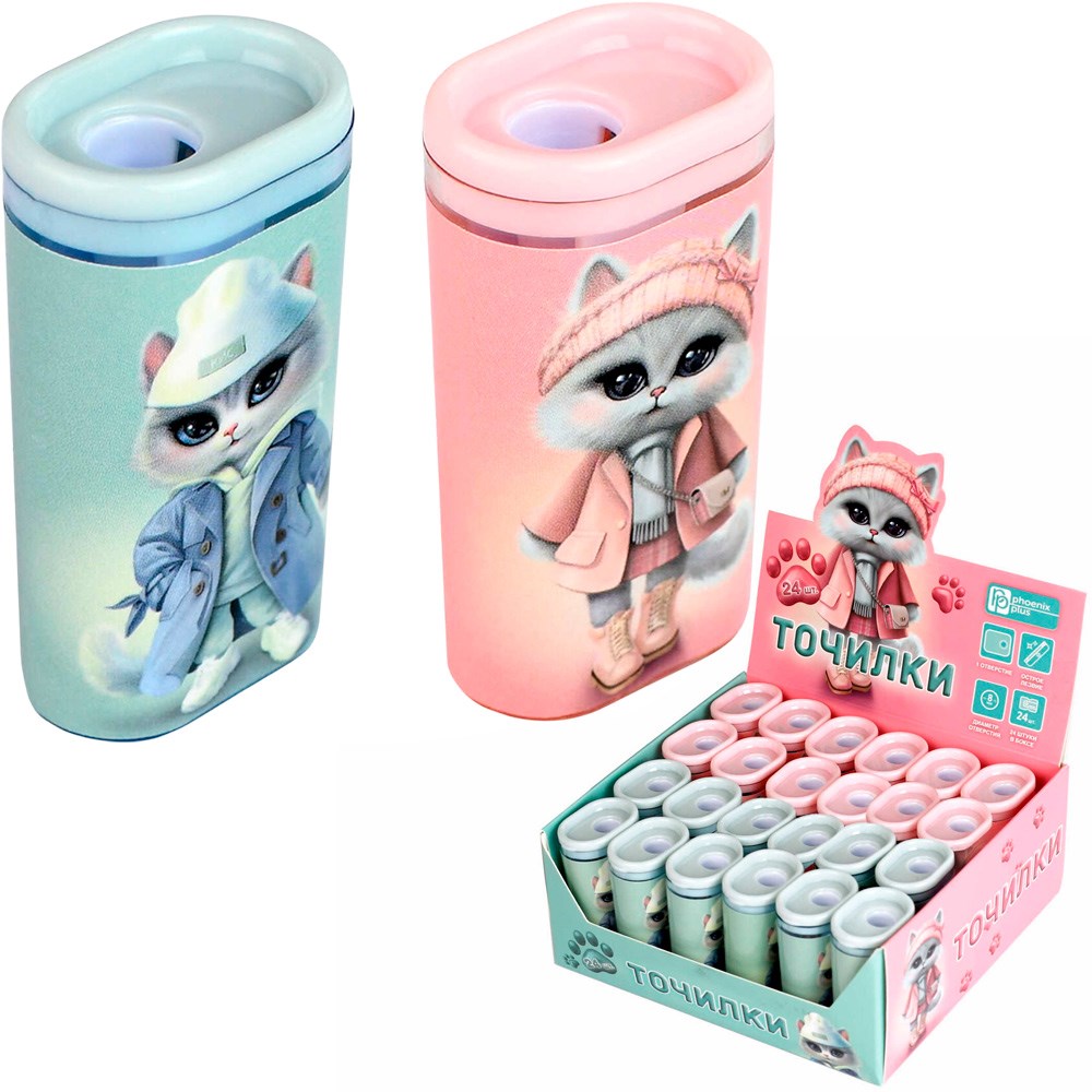 Точилка Городские кошечки 1 отверстие, контейнер 69644