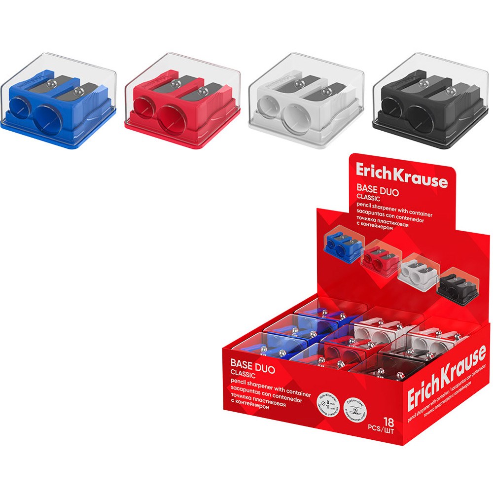 Точилка пластик Base Duo, Neon, с контейнером ассорти 60082 ErichKrause