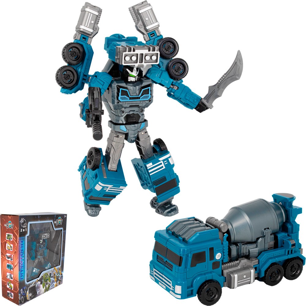 Комплектация: робот-трансформер – 1 шт., игровые аксессуары (2 меча 8 х 1 см, автомат 8,5 х 3,5 см, деталь для робота) – 1 шт., инструкция – 1 шт.