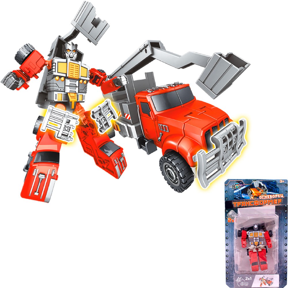 Подвижная фигурка превращается из робота в пожарную люльку и обратно.