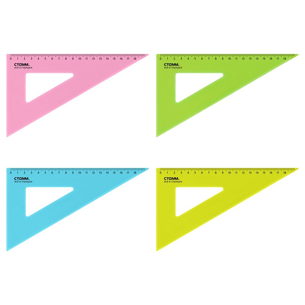 Треугольник 30° 18см СТАММ пластиковый, прозрачный, неоновые цвета, ассорти 028399.
