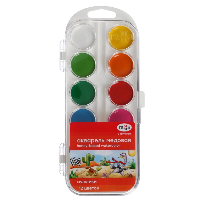 УЦЕНКА Акварель 12цв пластик Гамма "Мультики", без кисти (211046_12)