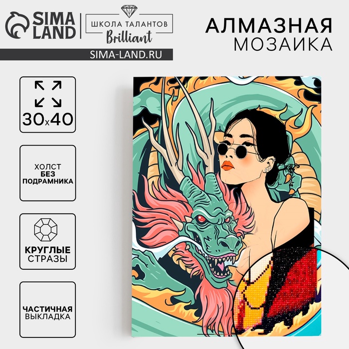 УЦЕНКА Алмазная вышивка с частичным заполнением "Девушка с драконом" без рамы 30*40 см
