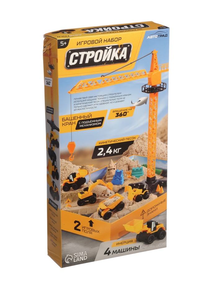 Стройте, фантазируйте и управляйте настоящей техникой! Игровой набор «Стройка» со строительной техникой и кинетическим песком — это целая стройплощадка для юного инженера. Ребёнок сможет возводить объекты, управлять краном и создавать собственные дороги.
