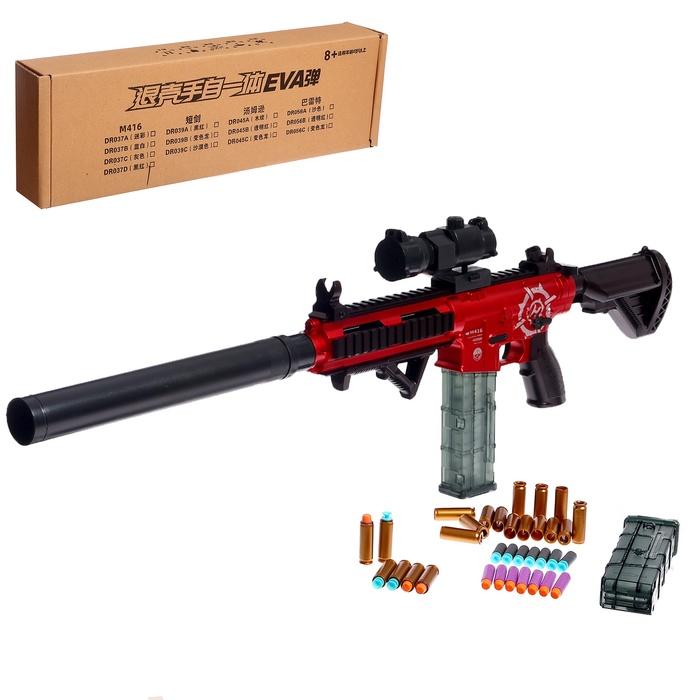 - В комплекте есть 14 мягких пуль, 16 гильз, а также 2 присоски.