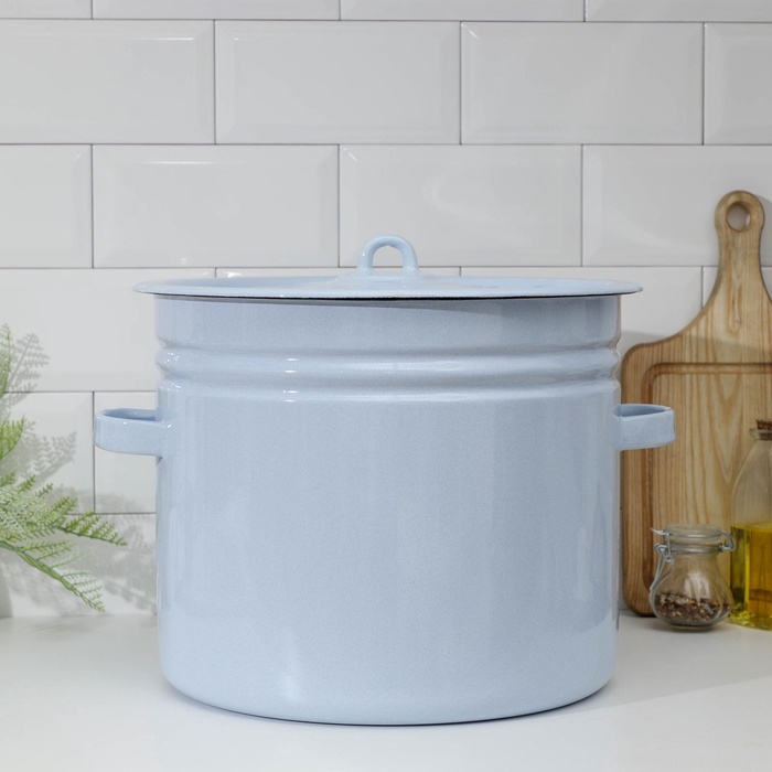 УЦЕНКА Бак эмалированный, 20 л, d=34 см, с крышкой, без декора, голубой